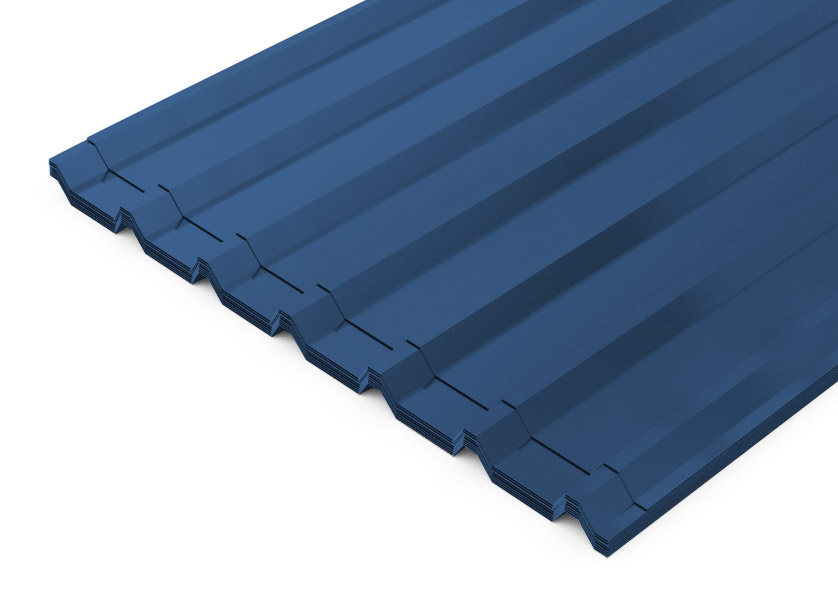 Профлист С10 синий, толщина 0,65 мм. Более прочный, чем 0,5 мм, используется для обшивки стен с повышенными требованиями к жесткости, например, на ветреных участках или для высоких заборов. Сохраняет эстетичный вид.