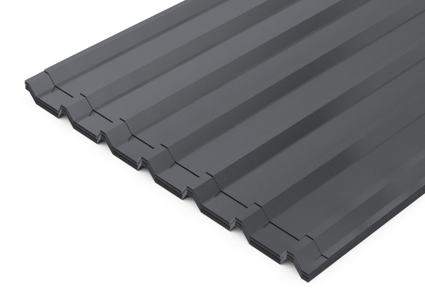 Профлист Н75 с высотой профиля 75 мм и толщиной стали 0,7 мм. Имеет рабочую ширину 750 мм и длину 800 мм (нестандартный короткий лист, часто используется для доборных элементов). Покрыт полимерным составом темно-серого цвета (RAL7024), который обеспечивает дополнительную защиту и современный внешний вид. Высокая трапеция придает материалу exceptionalную несущую способность. Предназначен для локального усиления конструкций, изготовления отдельных элементов кровли или стен, где требуется повышенная прочность на небольшом участке. Качественное покрытие продлевает срок службы в агрессивных средах.
