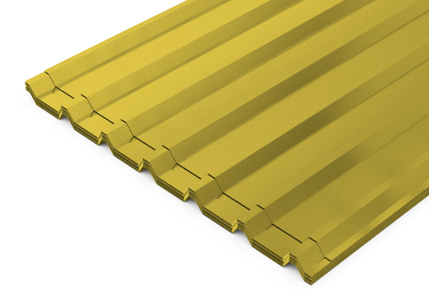 Профлист С21 с декоративным покрытием цвета желтый цинк (RAL1018). Толщина стали 0,5 мм, ширина 1000 мм. Необычный теплый желтый цвет делает материал заметным и позитивным. Подходит для детских учреждений, спортивных объектов, коммерческих построек, а также для создания ярких акцентов в частном домовладении. Полимерное покрытие защищает от выцветания. Профиль С21 обеспечивает хорошую жесткость. Это выбор для тех, кто ценит не только функциональность, но и индивидуальный, жизнерадостный внешний вид конструкций.